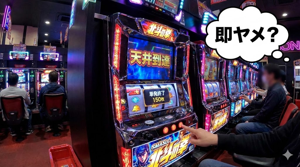 また、天井単発後は「天国スタート」の抽選も優遇されているという説もあります。 少なくとも数ゲームは回して、リプレイや弱レア役での挙動を確認しましょう。 「単発だったからすぐに移動」というライバルが多い中で、ここを丁寧にケアできるかどうかが、長期的な収支の安定に繋がります。 ケンシロウが負けても、あなたの稼働はまだ負けていない。そう自分に言い聞かせて、冷静に次の一手を打ちましょう。